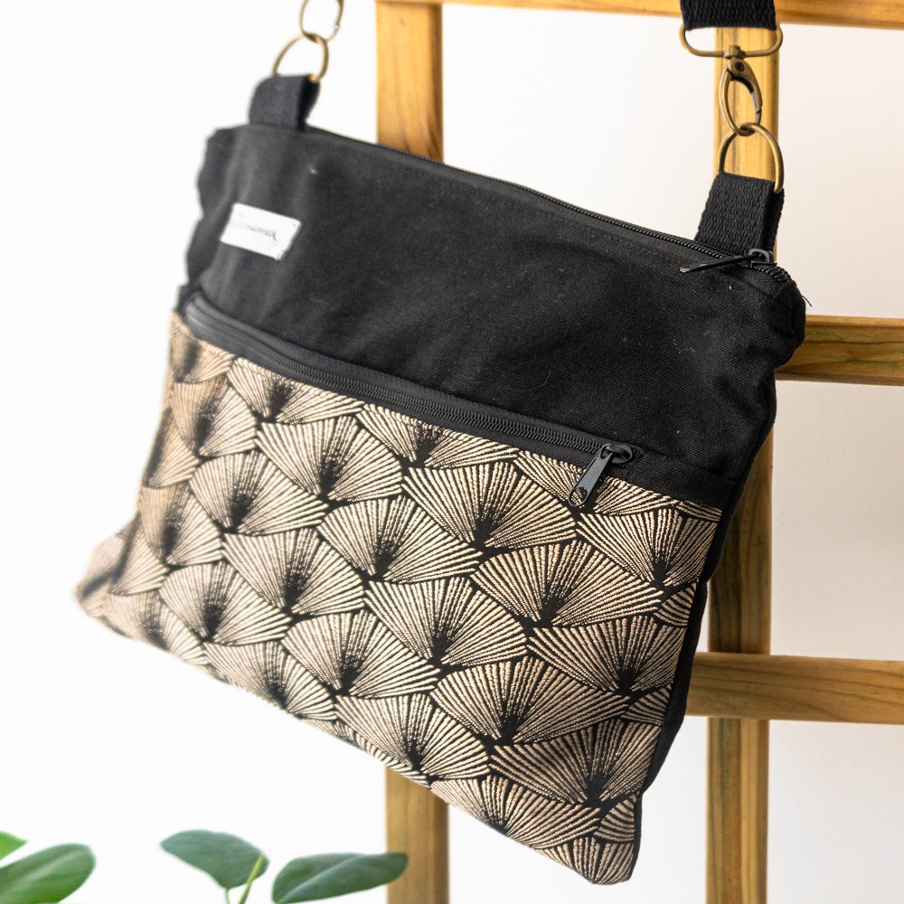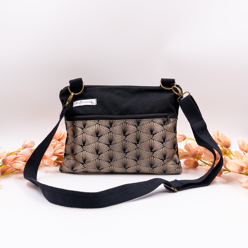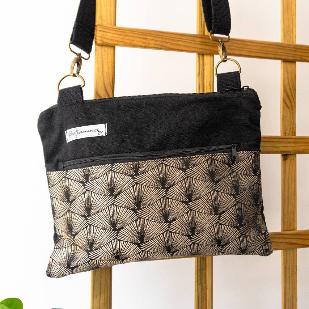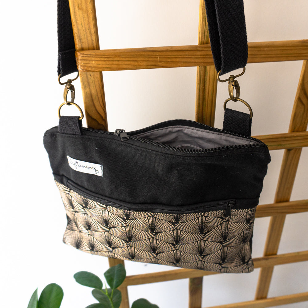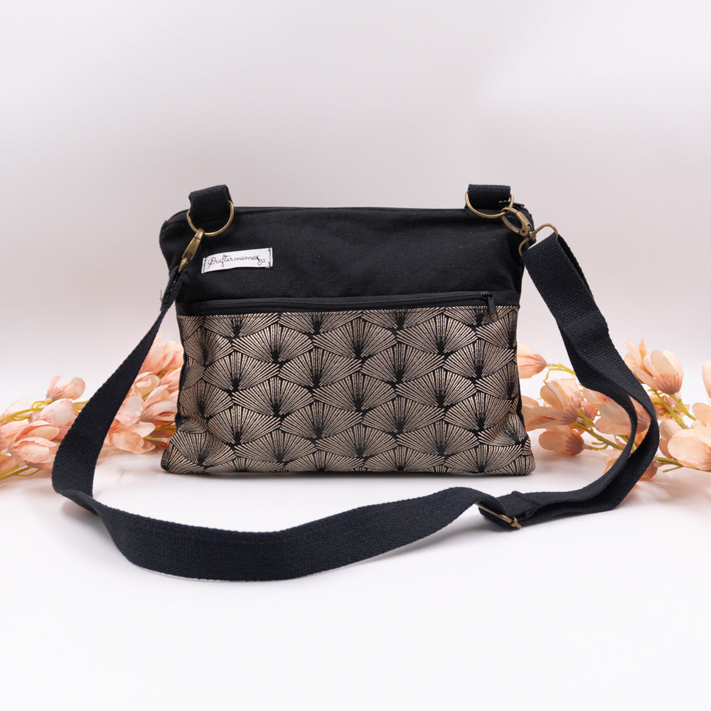 Γυναικεία τσάντα ώμου σε μαύρο με χρυσό