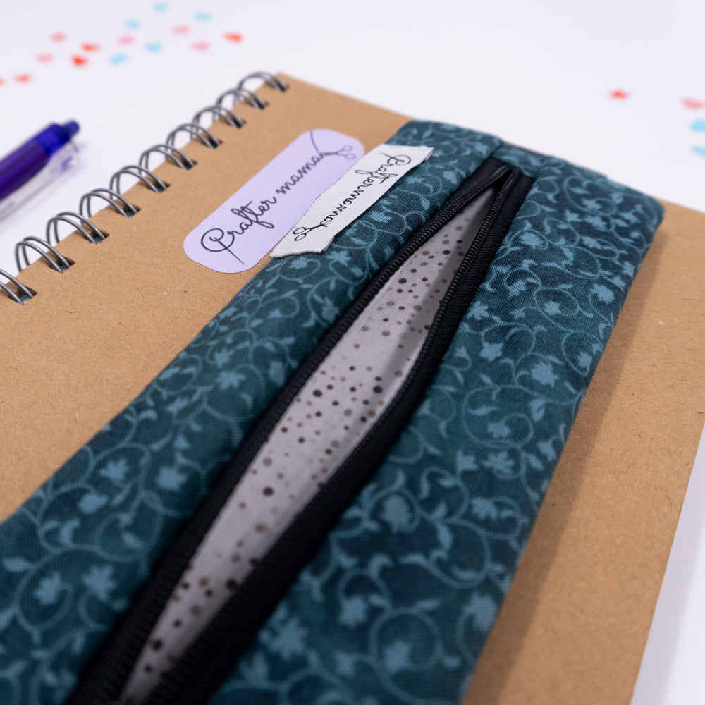 Κασετίνα τετραδίου με λάστιχο, πετρόλ σκούρο με φλοράλ