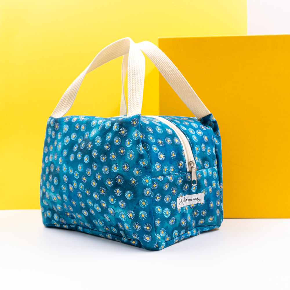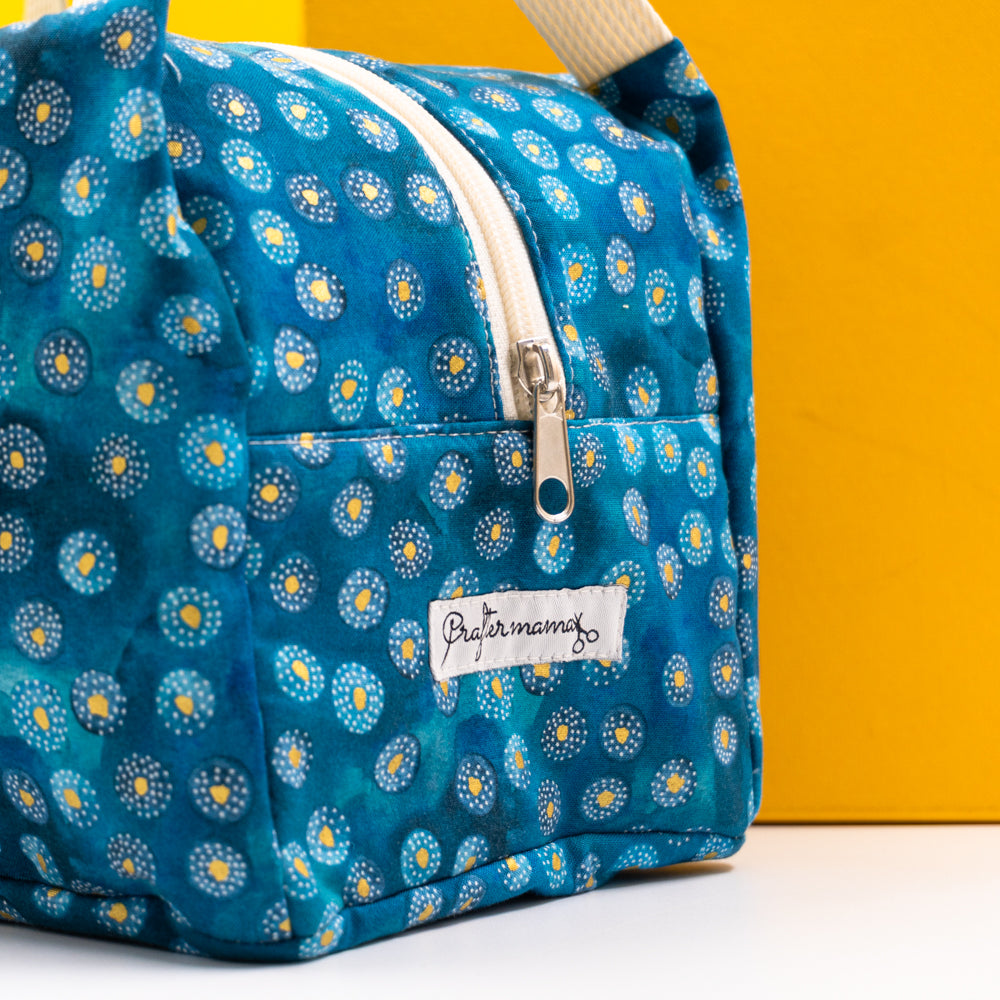 Χειροποίητο τσαντάκι μεταφοράς φαγητού με χερούλια και κλείσιμο με φερμουάρ.