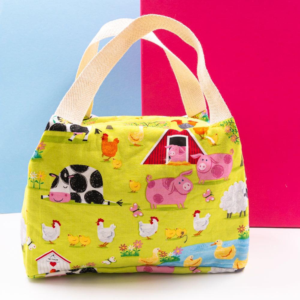 Τσαντάκι φαγητού με χερούλια και φερμουάρ, ζωάκια στη φάρμα