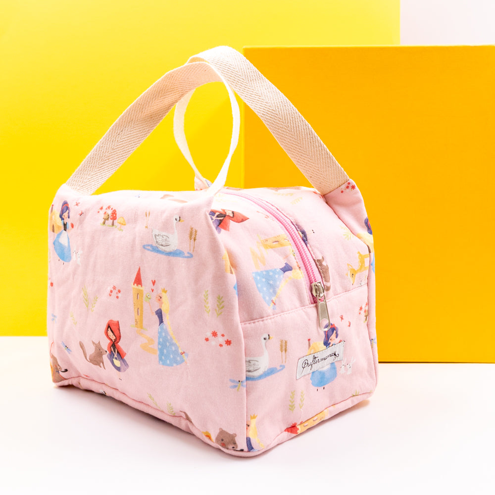 Τσαντάκι φαγητού με χερούλια και φερμουάρ, ροζ