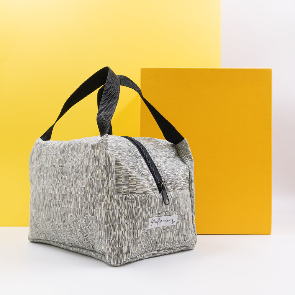Χειροποίητο τσαντάκι μεταφοράς φαγητού με χερούλια και κλείσιμο με φερμουάρ.