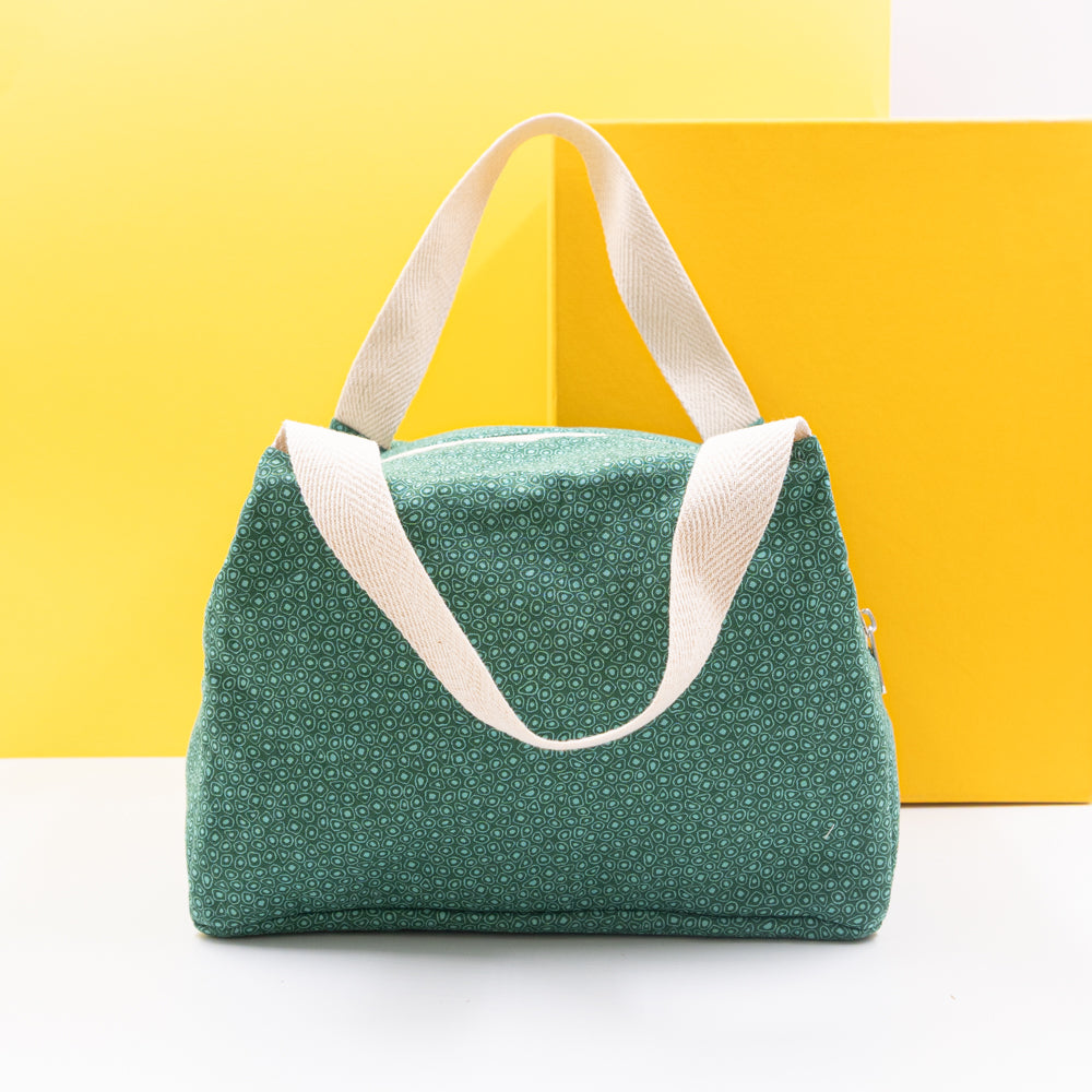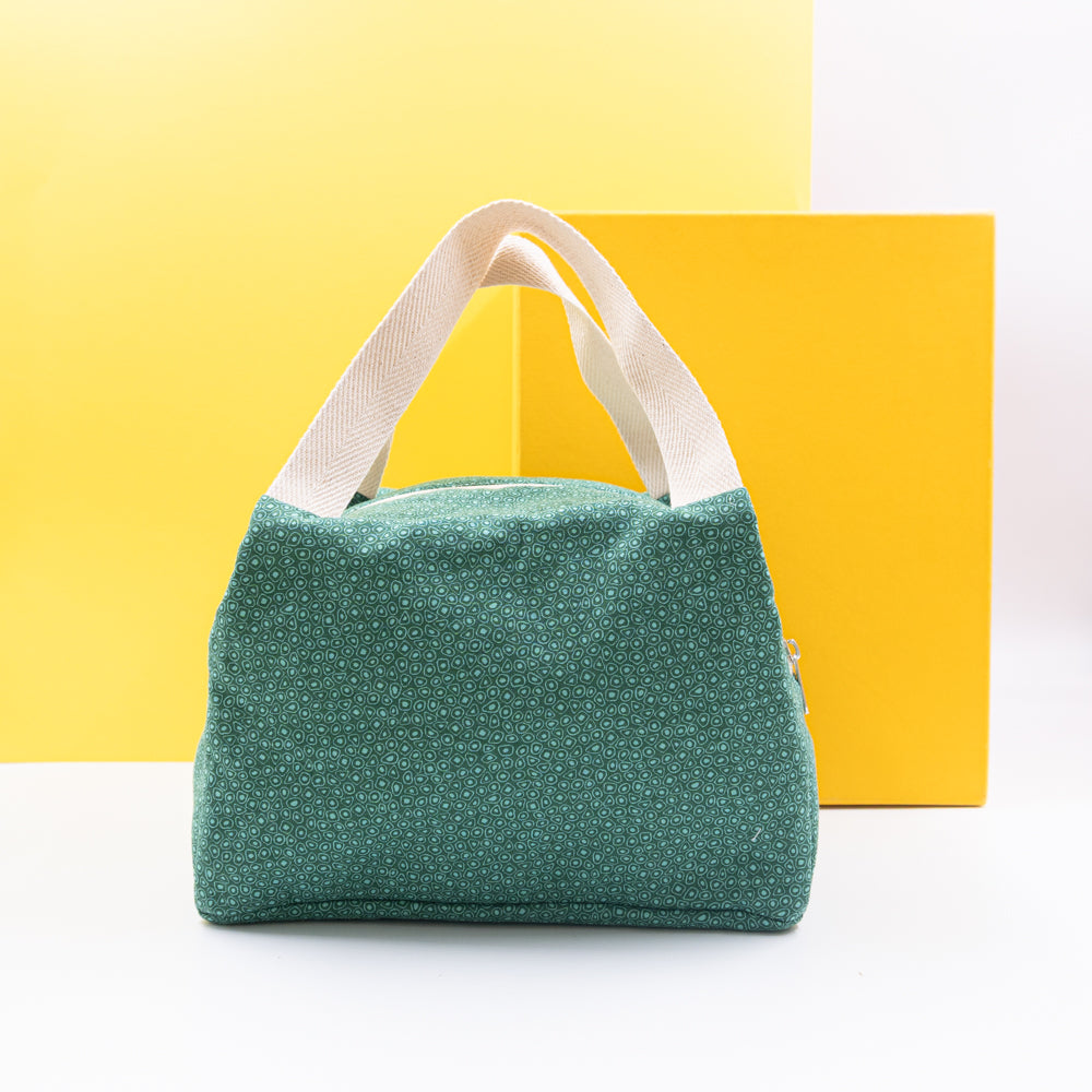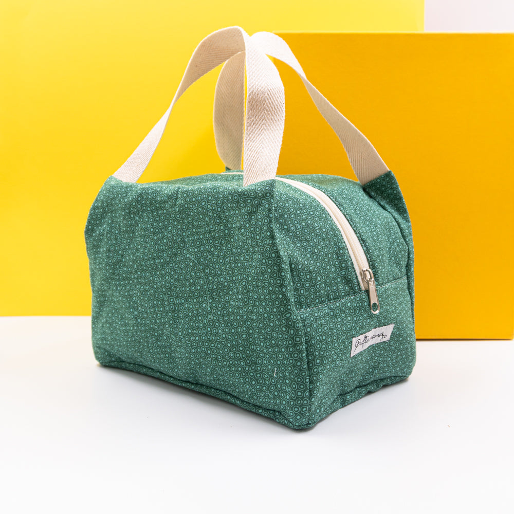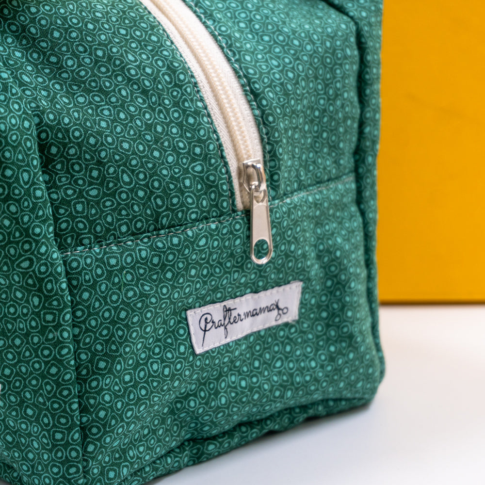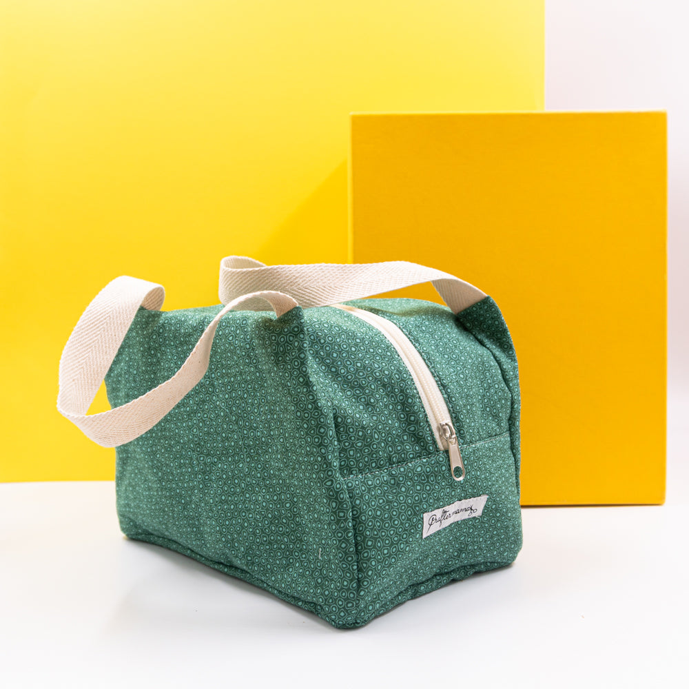 Τσαντάκι φαγητού με χερούλια και φερμουάρ, πράσινο με σχέδια